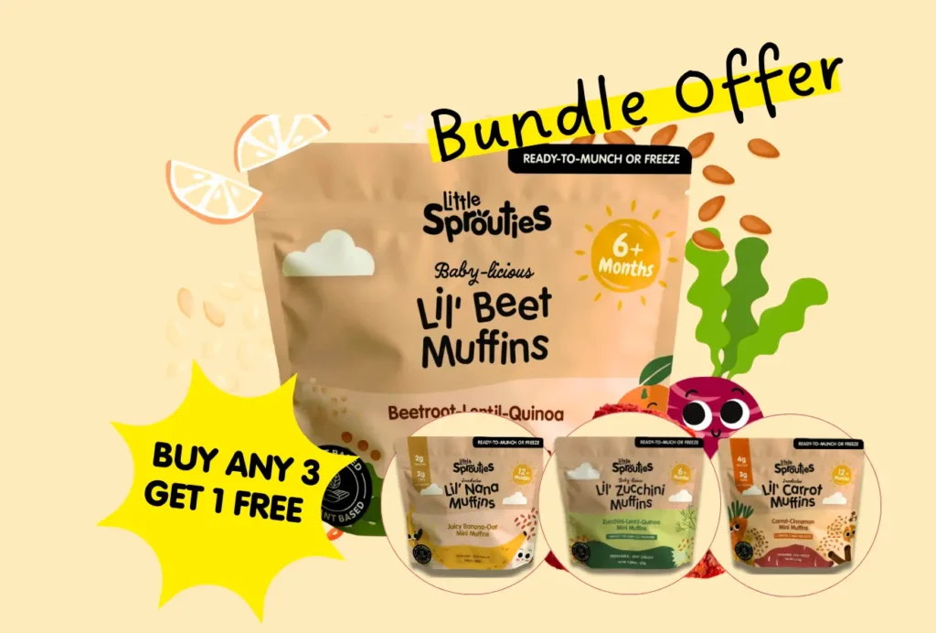 ResetOatmeal, pancakes, muffins the Little Sprouties way with wholegrains, legumes and veggies! Serve as breakfast, or pack in lunchbox.